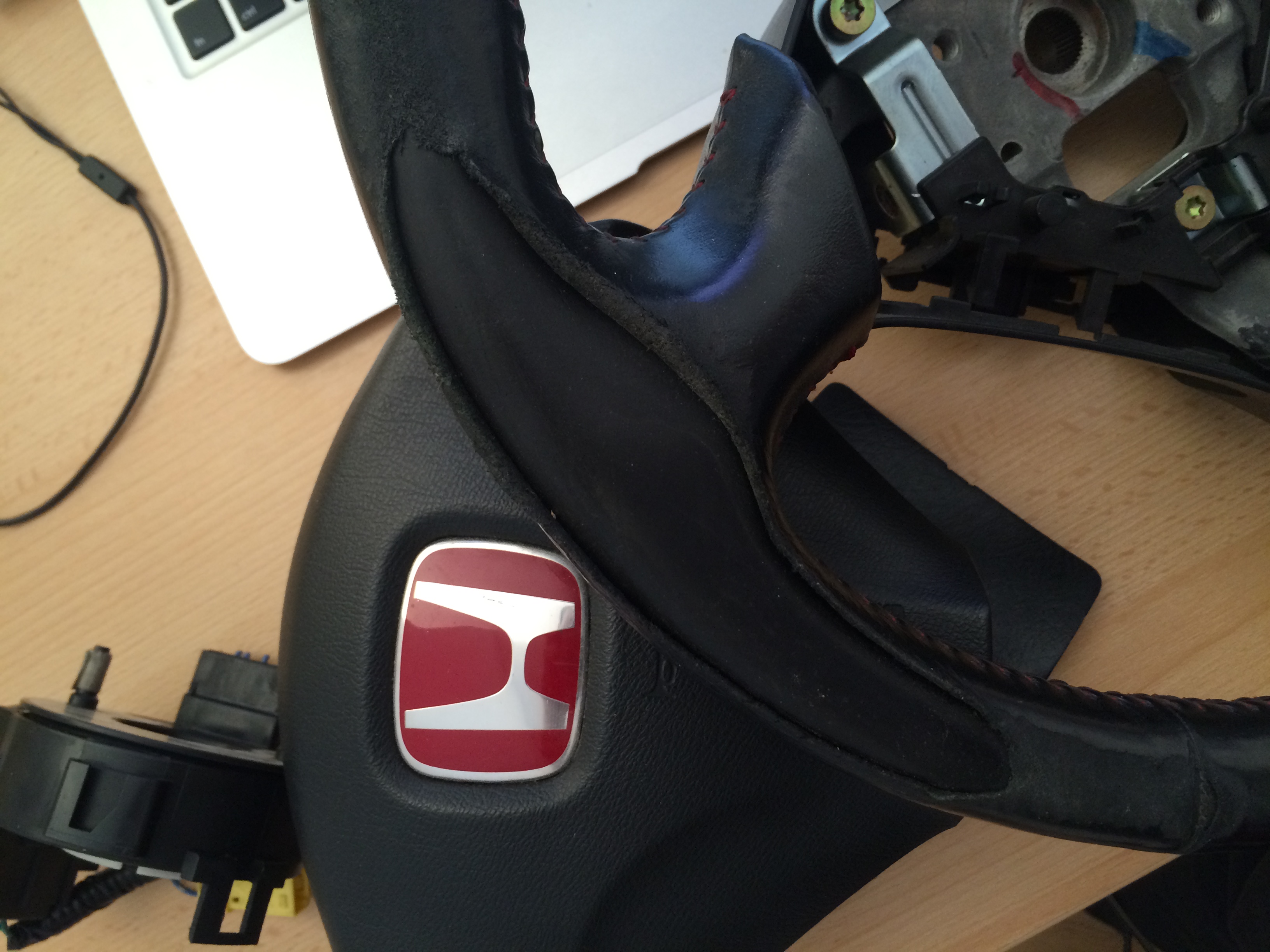 Bohužel je potrhanej a je z červeného CTR, který se prodává v ČR a má najeto přes 200 000km, takže ideálně na přešití u volantechu Úsměv