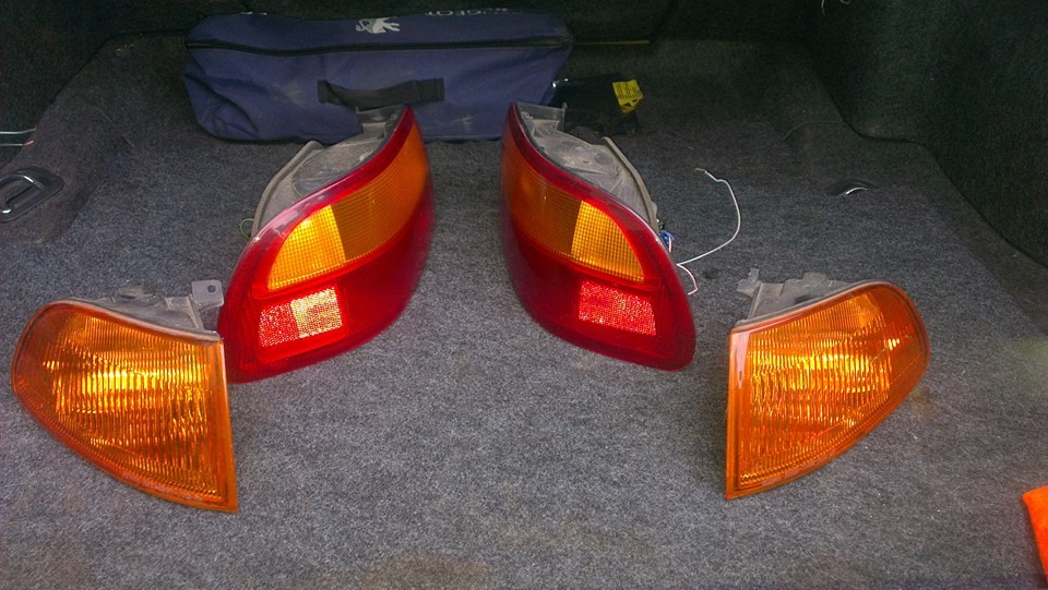 Napredaj smerovky (coupe/hb)( na lavej strane chyba kusok z uska na uchytenie ku svetlu) a zadne svetla z US verzie (cervene bocne odrazky aj so svetlom) pasuje na sedan/coupe..