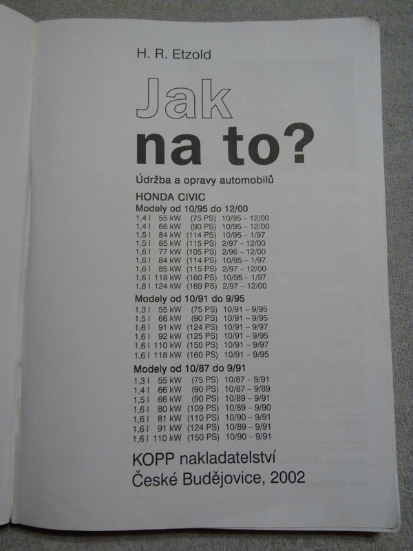Prodám použitou knihu Jak na to? pro Hondu Civic 10/87 - 12/00.