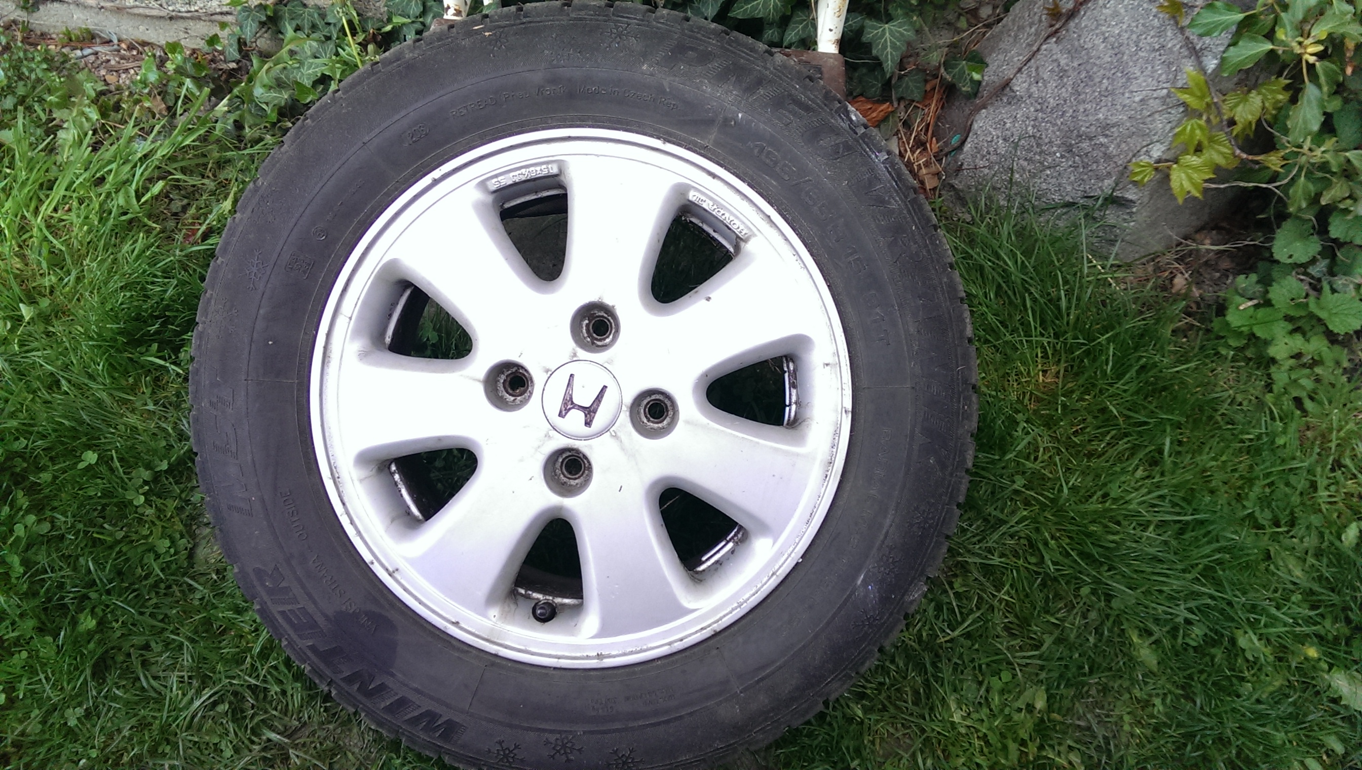 A ještě tu mám k dispozici originalni Honda alu 4x114.3 r15. V dobrém stavu, neodrbané, nenakopané a jeste k tomu s pneu cca 6mm 195/65/15 zimní. Bud za něco vyměním a nebo prodám, cena 1200 i s pneu.