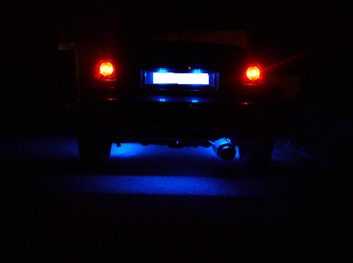 modre podsviceni spz povolene neni...mohlo by to oslnovat ridice cože cože ? tak mi to tenkrat rekli Policie Čr....kazda spz by mela byt osvetlena klasickou zlutou barvou mozna by tolerovali i bilou, ale urcite ne modrou,červenou a atd...ja za to vyfasnul 300,- z mista to mi hlava nebere