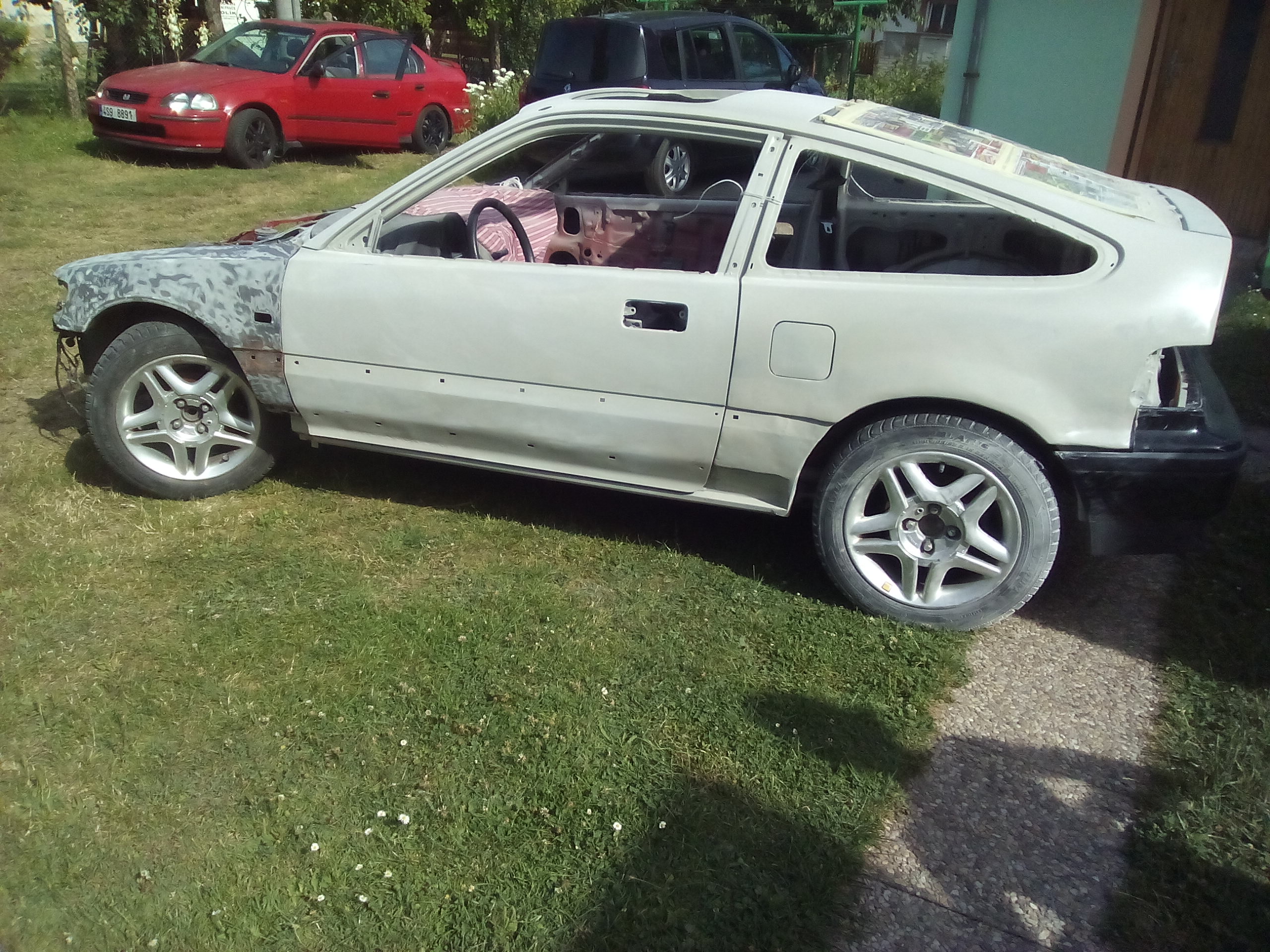 Ahoj Hondaři. konečně jsem se rozhoupal a rozhodl se, že sem taky něco napíšu. V létě 2005 sem se stal spokojeným majitelem Civica 6G sedan r.v. 1996 s motorem 1.5. Auto má dnes najeto pře 300000 km a dál bez problémů slouží na každodenní ježdění. Dlouhou dobu jsem ale koukal po druhém autě. Nějakém 'na hraní'.... nejdřív jsem myslel, že to bude Honda CRX DelSol, ale nakonec jsem v říjnu 2015 přivezl CRX 2G s motorem D16A9, r.v. 1989. Auto 2 roky stálo na ulici, takže celkový stav nebyl moc dobrý, ale jak jsem ho viděl, bylo rozhodnuto. Jelikož nemám dílnu, kde bych opravoval, auto jsem odvezl na zahradu začal přes zimu shánět díly a čekal na pěkné počasí, které konečně přišlo a ja začal s rekonstrukcí. Postupně sem budu dávat fotky jak budou práce pokračovat. Držte palce.