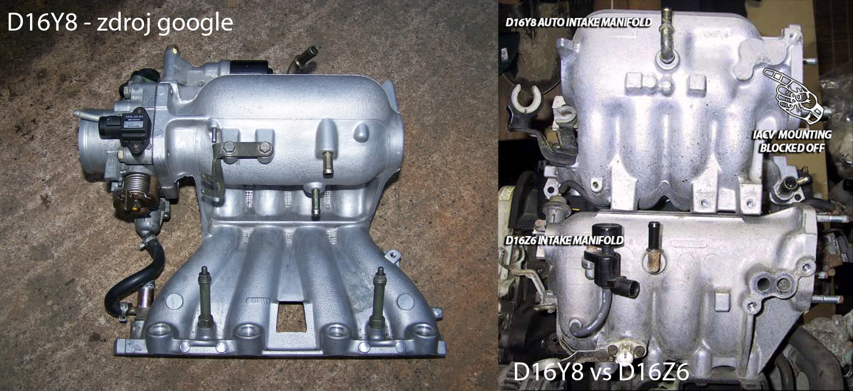Zdarec lidi, narazil jsem na malý/velký problém. Podařilo se mi na vraku (v hromadě sání) váhrábnout sání které je vytažené s 6G coupe 5man OBD2. Jenomže, chvíle studování fotek na netu a nejsem si 100% jistý jestli jde opravdu o sání z D16Y8.
