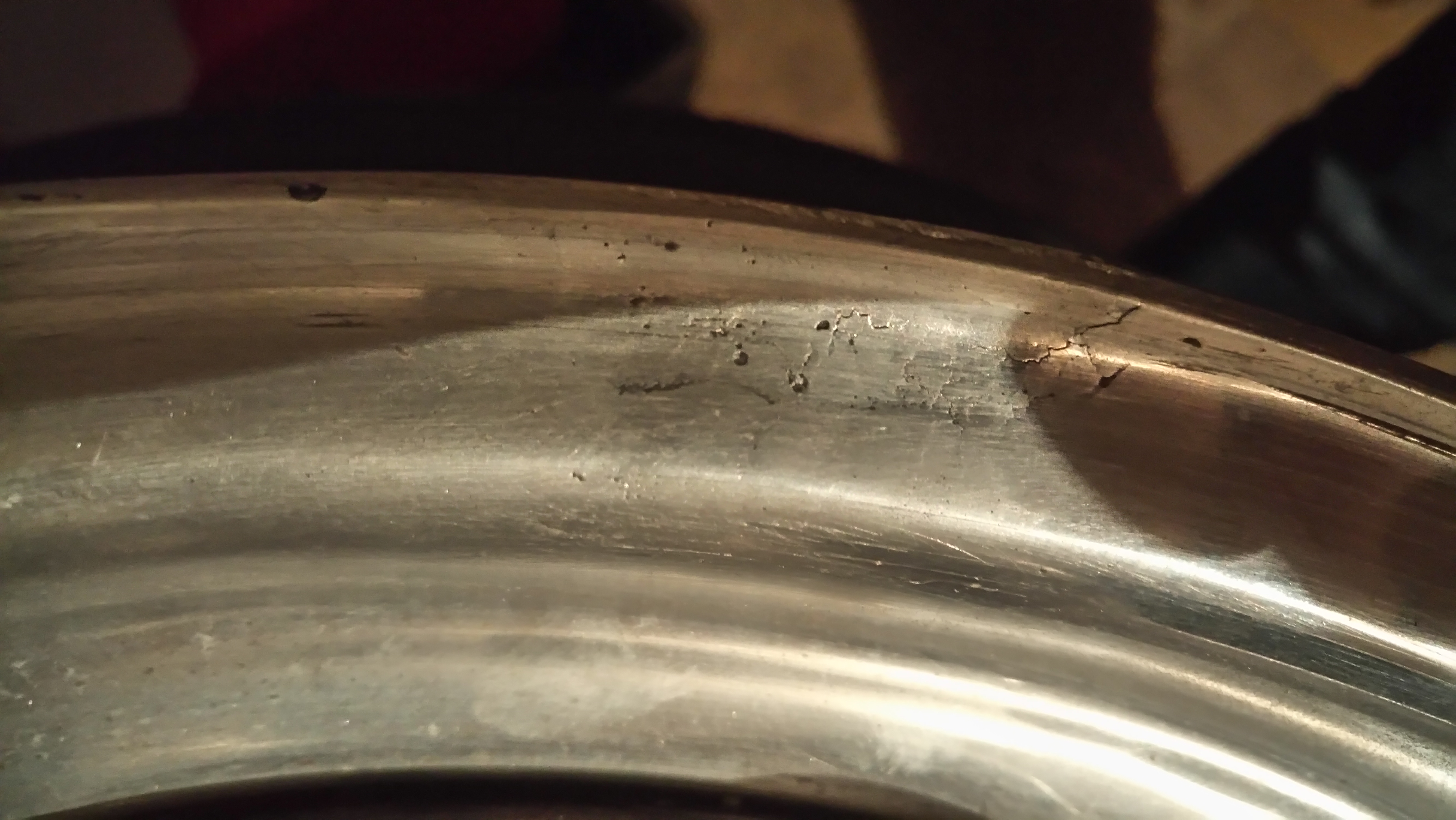 Kola mají leštěné límce a lakované středy. Bohužel jedno kolo má vlasovou prasklinku v límci. Takže buď sehnat jiné, nebo se to pokusit opravit.