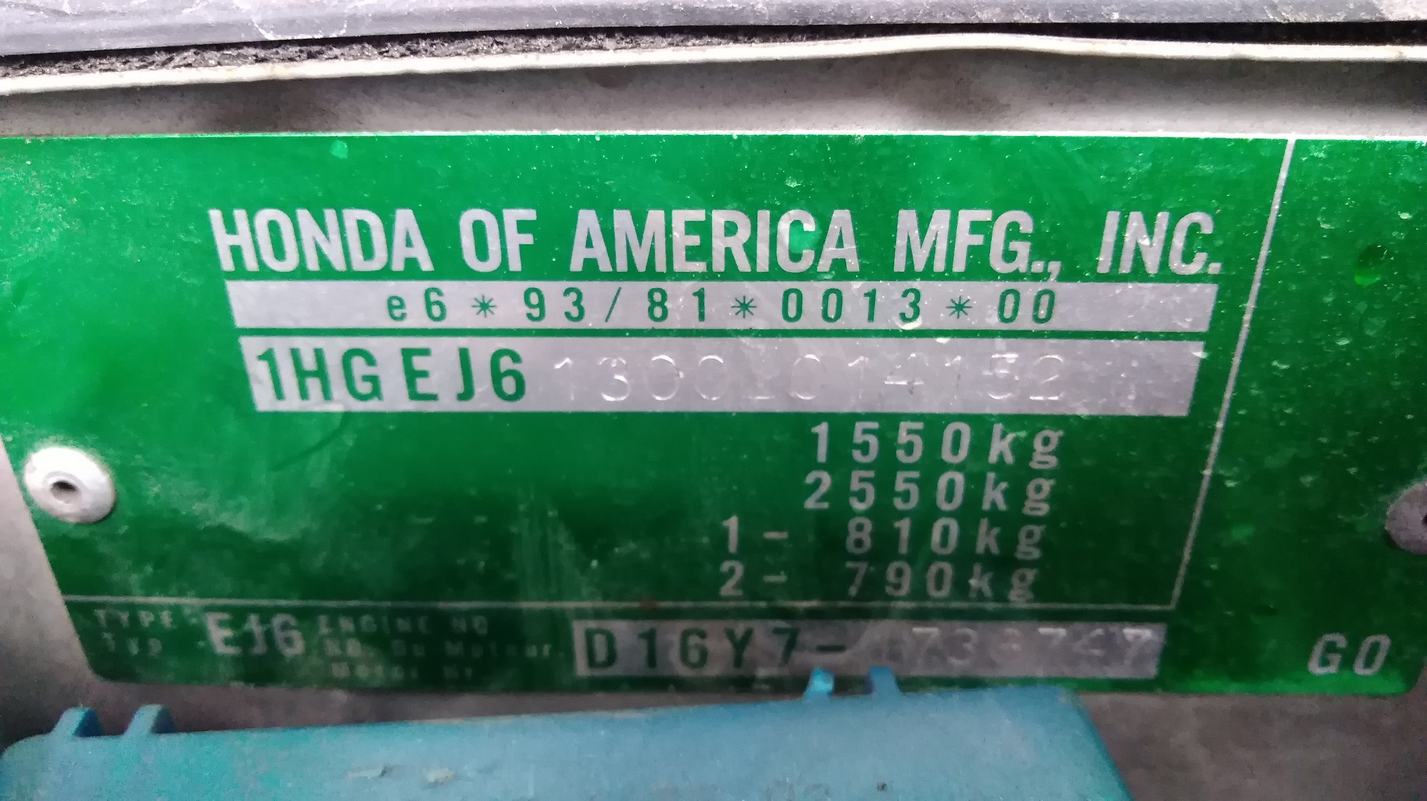 Motor: 1,6i D16Y7