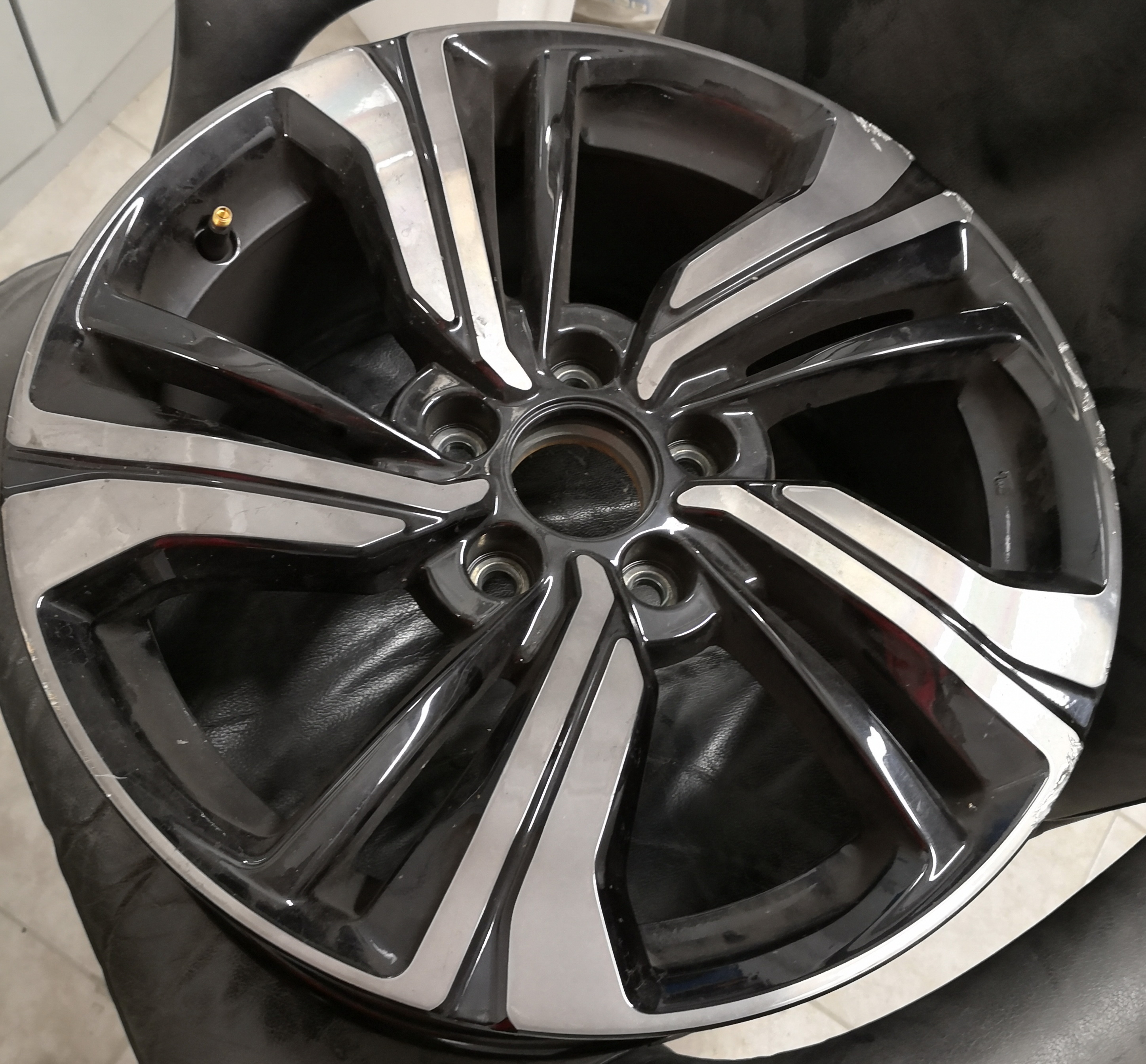 Sada originálníéch ALU kol z nové Hondy Civic Hatchback r.v. 2019, včetně 1ks disku, který je povrchově poškozen o obrubník. Při pojistné události Honda prodává jen samotný disk za 18000Kč/ks.