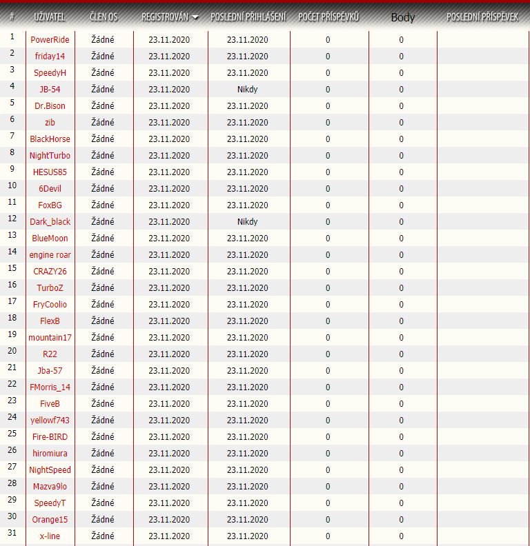 Tady je seznam nicků, které byly registrovány v inkriminované době.