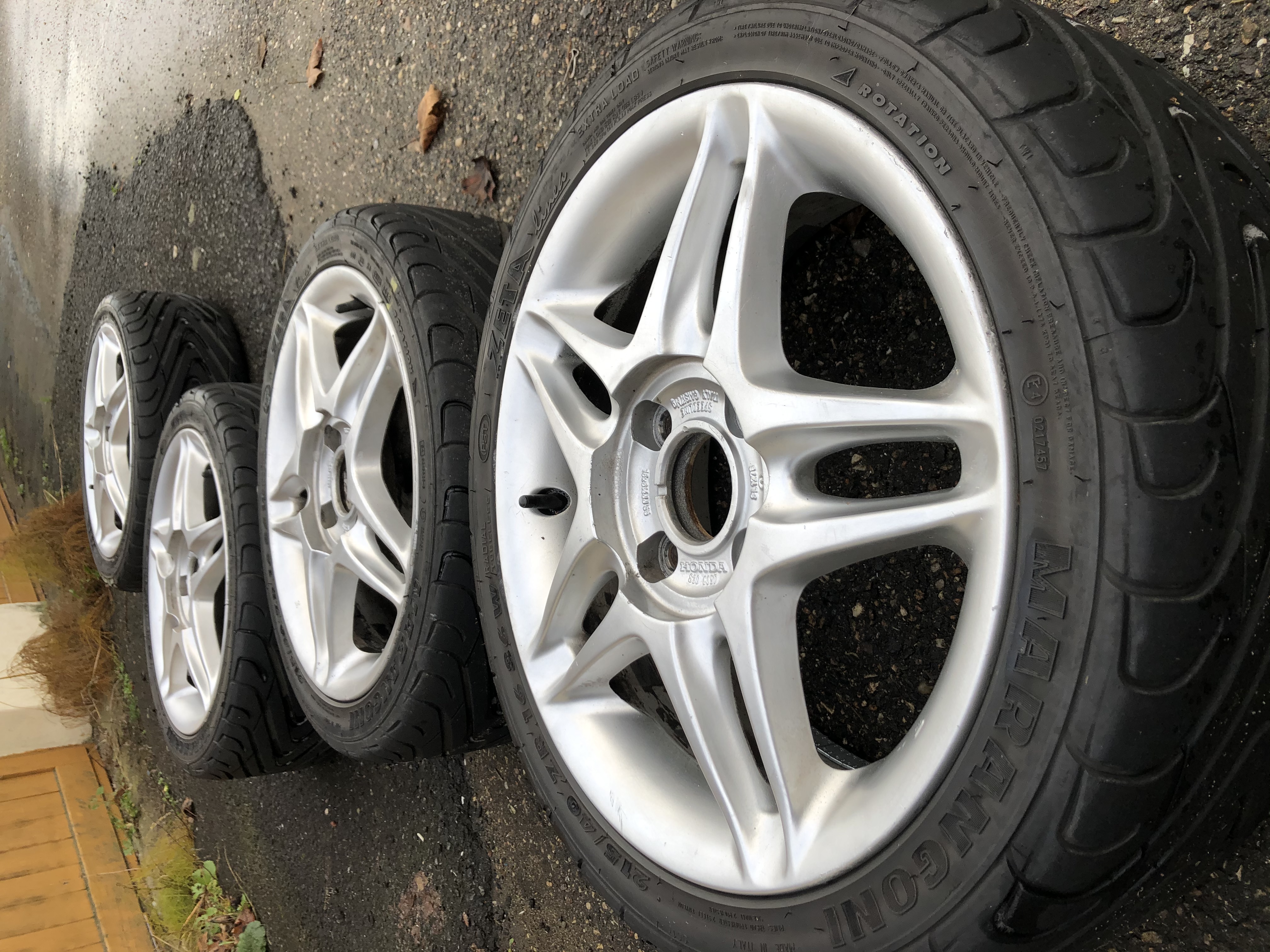 Prodám své OEM Honda Speedline R16 v rozteči 4x114,3. Letní pneu Marangoni Zeta 6-7 mm. Cena 7000,-