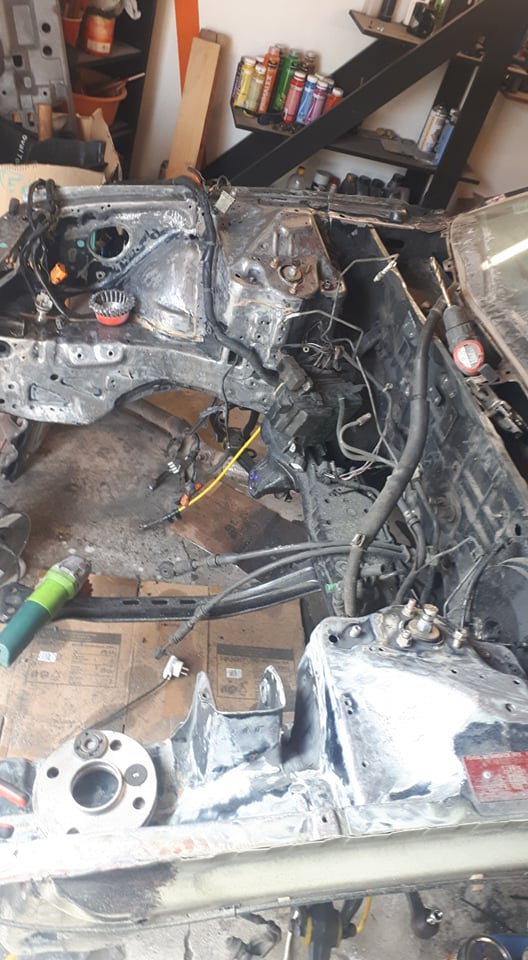 Auto je zčasti zvonka vybrúsené do živého plechu, čakám na opieskovanie predných a zadných strmeňov, aby som ich mohol repasovať a namontovať na auto, všetko zamomentovať a byť ready kedykoľvek auto posunúť kam treba :) Napadla ma ďaľšia vec - zaslepenie motorového priestoru, a schovanie káblového zväzku - viem, všetko naraz.. ale idem podľa možností, času a peňazí.. lepšie robiť pomaly a postupne všetko, ako začať niečo a čakať, čakať, čakaaať..