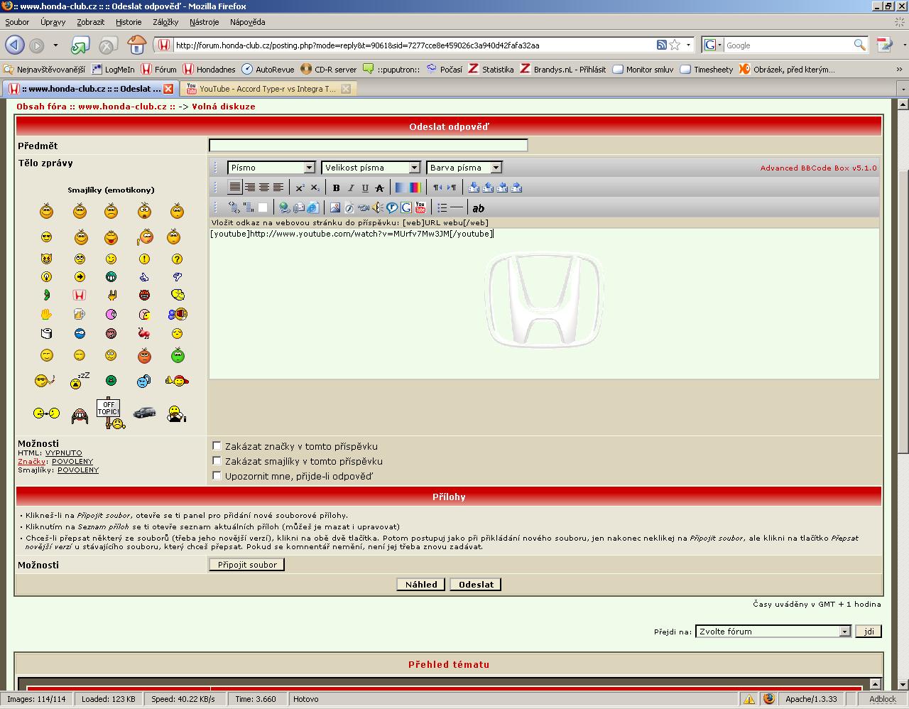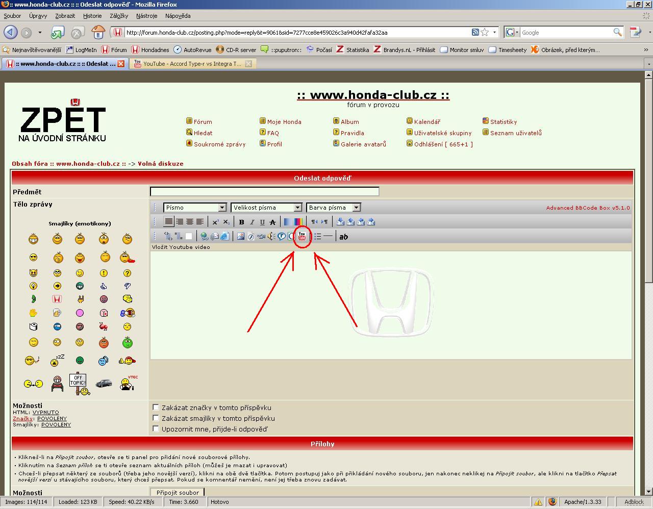 tudy na forum pri psaní příspěvku kliknu na ikonku YouTube - viz třetí obrázek